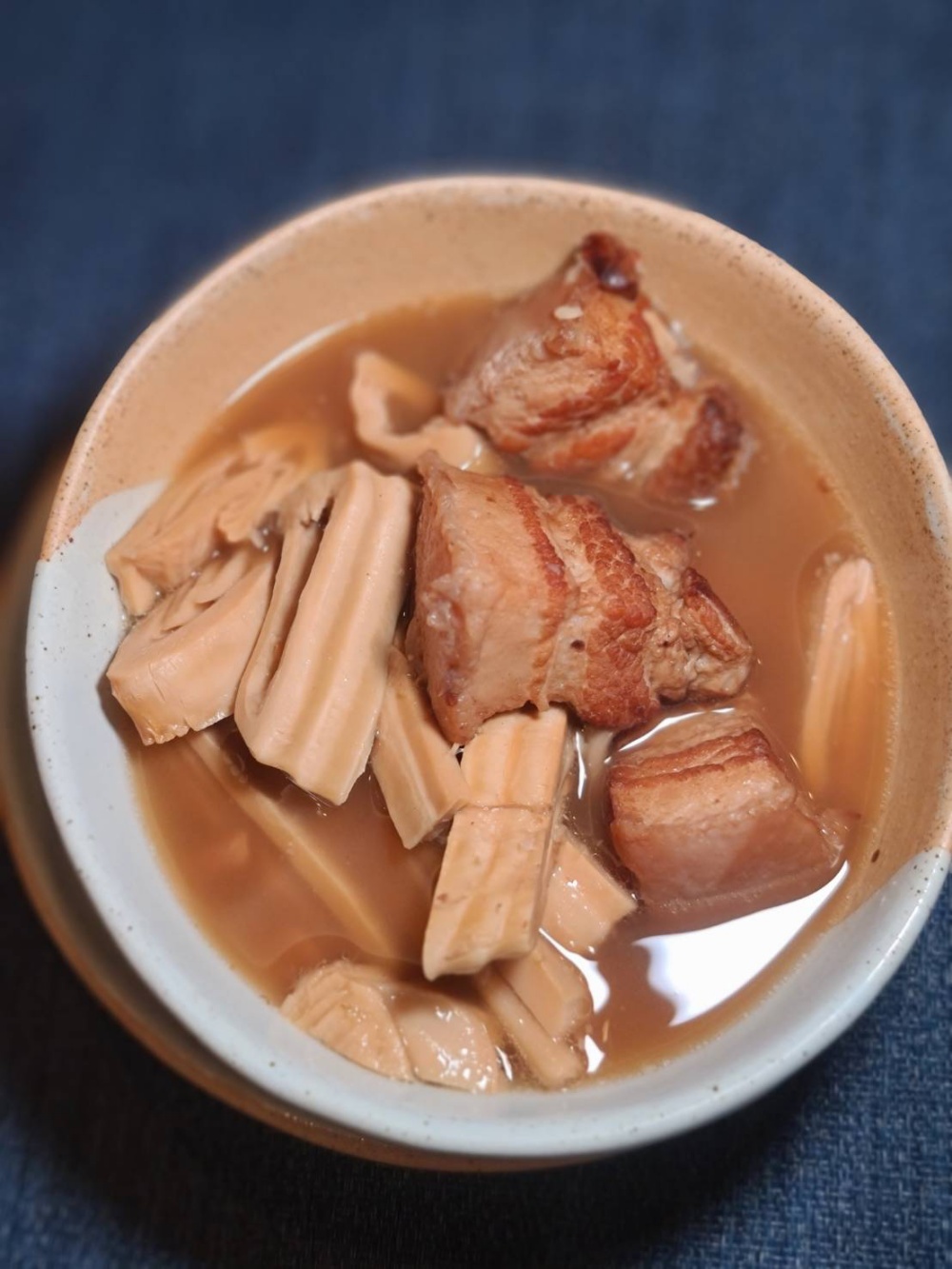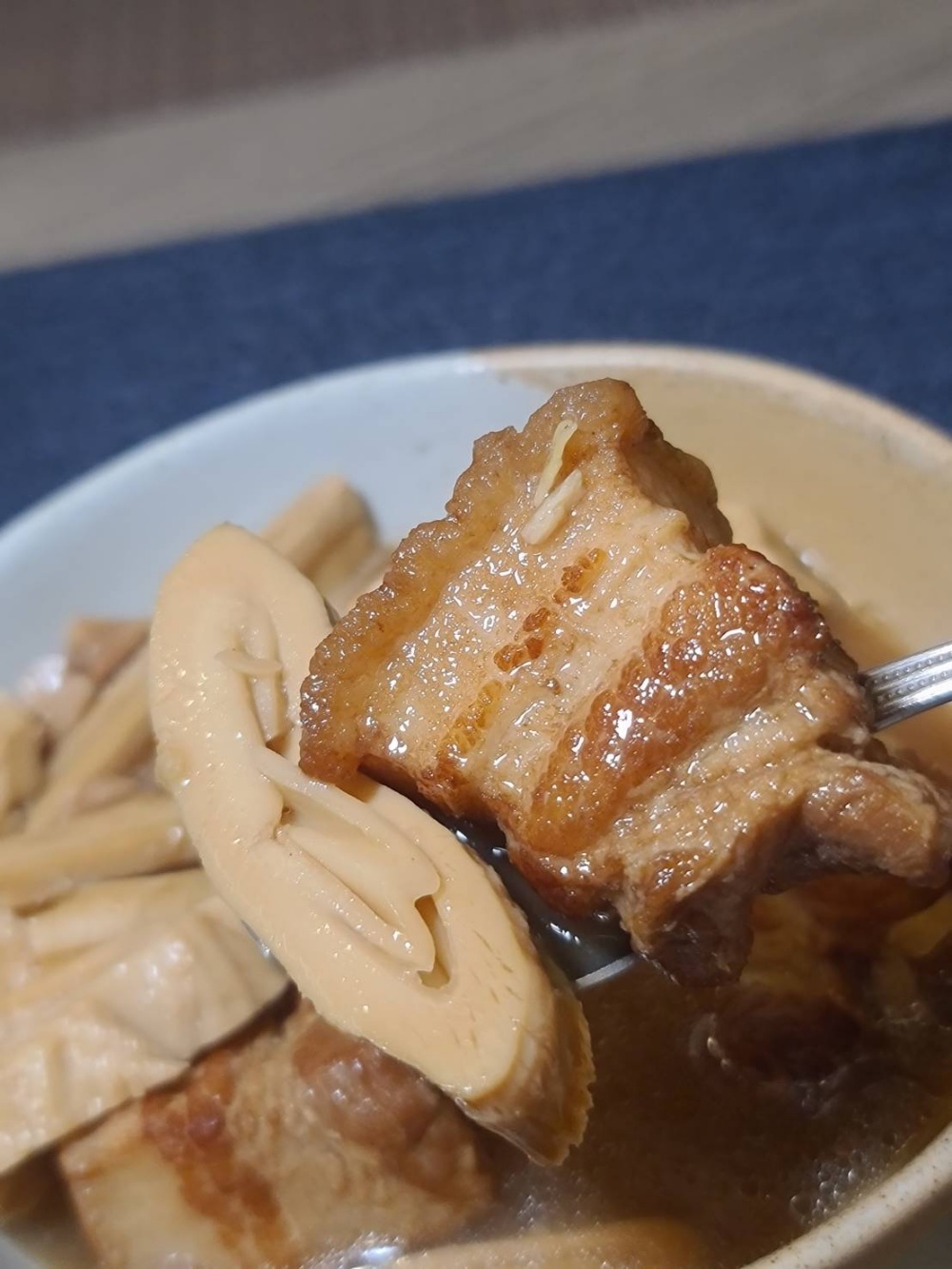 หมูสามชั้น 500 กรัม, หน่อไม้จีน 1 กิโลกรัม, ถั่วลิสงดิบ 150 กรัม, โป๊ยกั๊ก 5 ดอก, ซีอิ๊วขาว 2 ช้อนโต๊ะ, ซีอิ๊วดำ 1 ช้อนชา, ซอสถั่วเหลืองปรุงรส 2 ช้อนโต๊ะ, น้ำตาล 100 กรัม, เกลือ 3 ช้อนชา และน้ำสะอาดประมาณ 12 ถ้วย
