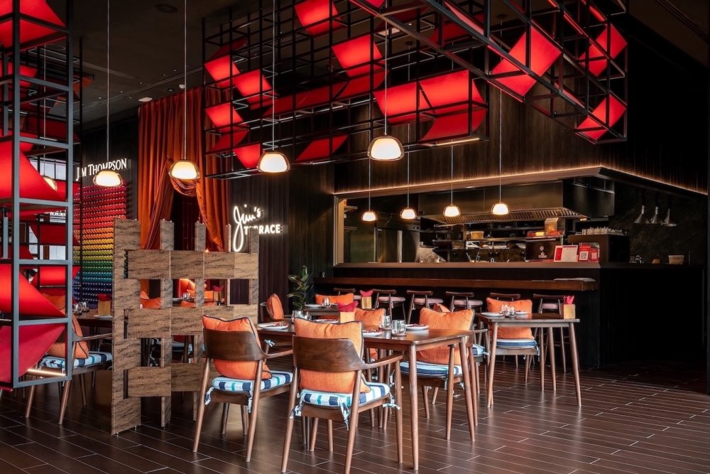 ธุรกิจอาหารและเครื่องดื่ม ก็เป็นอีกเสาหลักที่สะท้อนการต่อยอดสู่โลกไลฟ์สไตล์ของแบรนด์ได้อย่างครบถ้วน โดยมี “ร้านอาหารไทย จิม ทอมป์สัน” เป็นร้านแฟล็กชิป พร้อมเติมเต็มประสบการณ์ครบรสชาติด้วยร้าน Jim’s Terrace วิวบ้านไทย, The O.S.S. Bar บาร์ไวบ์เท่ธีมสายลับ, The O.S.S. Room ทีรูมในบรรยากาศสุดร่มรื่น และ Silk Café คาเฟ่บรรยากาศดี ซึ่งทั้งหมดนี้ตั้งอยู่ในจิม ทอมป์สัน เฮอริเทจ ควอเตอร์ นอกจากนี้แบรนด์ยังได้เปิดร้าน Jim’s Terrace ที่ One Bangkok และ Silk Café สาขาที่สองที่ ICONSIAM