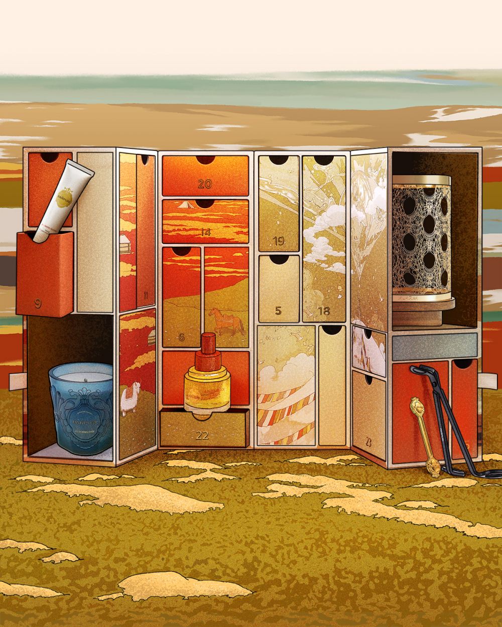 เซ็ต Advent Calendar รังสรรค์และออกแบบอย่างพิถีพิถันและสวยงาม พร้อมลวดลายเส้นสุดพิเศษจากศิลปินนักวาดภาพประกอบ ‘โอ-ธีรวัฒน์ เฑียรฆประสิทธิ์’ ที่นำแรงบันดาลใจของคอลเลคชั่น JOURNEY TO THE PEAK ในการออกเดินทางสู่ดินแดนเทือกเขาแห่งเอเชีย เพื่อดื่มด่ำกับความมหัศจรรย์ของธรรมชาติ เพื่อปลุกพลังแห่งประสาทสัมผัสทั้งร่างกาย และเติมเต็มจิตวิญญาณในปีใหม่นี้อย่างสวยงาม ผลิตภัณฑ์ทั้งหมดใน Advent Calendar เป็นเสมือนตัวแทนแห่งความปรารถนาดีเหมาะสำหรับมอบให้เป็นของขวัญแก่ตัวคุณเอง และคนที่คุณรัก