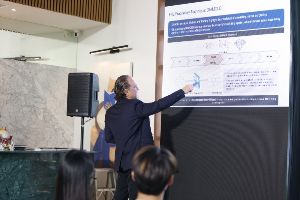 ขณะที่ ดร.ฮีเบิร์ต แลมเบลต ซึ่งบินตรงจากประเทศบราซิลเพื่อมาร่วมงานนี้โดยเฉพาะ ได้ให้ความรู้และแนวทางในเรื่องของการปรับโครงหน้าในระดับลึก ด้วยเทคนิคการใช้โปรแกรมฟิลเลอร์ว่า “ในปัจจุบันเทคนิคการใช้โปรแกรมฟิลเลอร์ HA ไม่ได้ถูกจำกัดอยู่แค่ชั้นผิวตื้นอีกต่อไป แต่ได้ลงลึกไปถึงโครงสร้างของใบหน้า ด้วยแนวคิด Deep-Plane Injection โดยต้องมีความเข้าใจในเรื่องกายวิภาคของใบหน้าและลำดับชั้นผิวอย่างลึกซึ้ง จึงสามารถวางแผนในการใช้โปรแกรมฟิลเลอร์ในตำแหน่งต่าง ๆ ซึ่งเป็นเทคนิคที่เน้นความแม่นยำของการใช้โปรแกรมฟิลเลอร์ HA