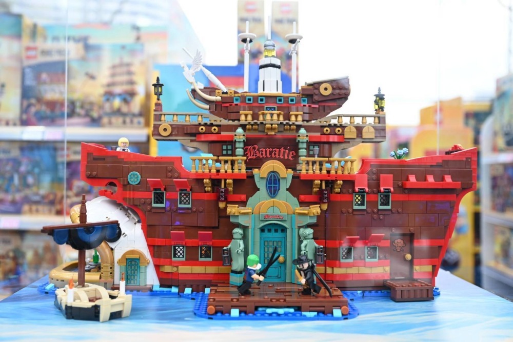“LEGO®ONEPIECE The Baratie Floating Restaurant” ท่าเรือหน้าร้านอาหารทะเลทรงปลาที่สามารถเทียบเรือโกอิ้งเมอร์รี่ได้ พร้อมให้แฟน ๆ จำลองฉากดวลดาบสุดดุเดือดระหว่างโซโลและมิฮอว์คด้วยฟังก์ชันเล่นเฉพาะตัว โดยทุกชุดมาพร้อมโปสเตอร์หมายจับบรรดาเหล่าโจรสลัดจากในเรื่องให้แฟน ๆ ได้เก็บสะสม นอกจากนี้ยังมี LEGO BrickHeadz™ มังกี้ ดี ลูฟี่ และตัวตลกบากี้ แบบเอ็กซ์คลูซีฟ ที่ออกแบบมาเพื่อยกย่องสองตัวละครขวัญใจแฟน ๆ ในโฉมที่เป็นเอกลักษณ์ที่สุด วางจำหน่ายพร้อมกันในงานนี้และทั่วโลก ตั้งแต่วันที่ 1 สิงหาคม 2568 เป็นต้นไป