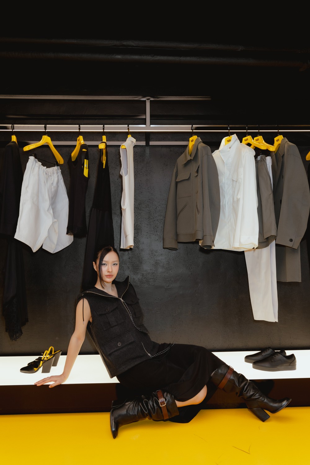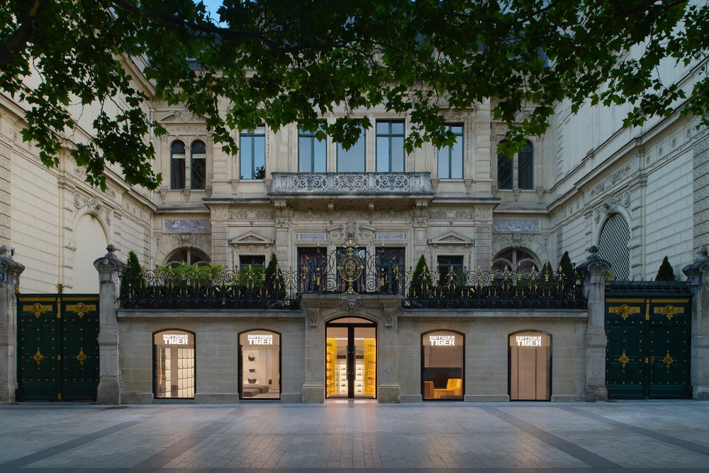 ภายในร้านโดดเด่นด้วยโทน Tiger Yellow สีเอกลักษณ์ของแบรนด์ ซึ่งรับกับความสง่างามของอาคารประวัติศาสตร์ The Travellers Paris ที่ก่อสร้างมาตั้งแต่ปี 1856 พร้อมองค์ประกอบอย่างผิวคอนกรีตเปลือย พื้นผิวโปร่งแสง และกระจกสีเหลืองสด เพิ่มมิติทางสถาปัตยกรรม โดยพื้นที่กลางร้านมีชั้นวางสินค้าขนาดใหญ่ห่อหุ้มด้วยกระจกสีเหลืองสว่าง เน้นย้ำความโดดเด่นของคอลเล็กชั่นล่าสุด การจัดสรรพื้นที่ภายในเน้นความเรียบง่ายแต่เปี่ยมพลวัต ด้วยเพดานรูปทรงเรขาคณิต แสงไฟนุ่มนวล และผังพื้นที่แบบเปิดโล่ง เพื่อสร้างประสบการณ์การชมสินค้าอย่างต่อเนื่องและคล่องตัว