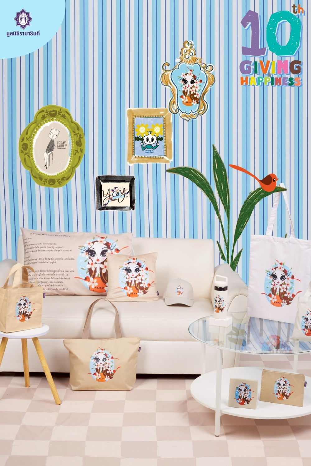 นำโดยศิลปินที่ร่วมสร้างสรรค์คอลเลกชันนี้มาด้วยกันตลอด 10 ปี ได้แก่ “ครูโต” ม.ล.จิราธร จิรประวัติ, “ครูปาน” สมนึก คลังนอก, และสองพี่น้องศิลปิน “แป้ง” ภัทรีดา – “นวล” นวลตอง ประสานทอง พร้อมด้วย “เพียว” โลกุตรา ดิจิทัลอาร์ตติสหนุ่มที่มาร่วมสร้างสรรค์ผลงานเป็นปีที่ 3 เพื่อถ่ายทอดนิยาม “ความสุขของผู้ให้และผู้รับ” ผ่านของที่ระลึกคุณภาพดี สร้างไลฟ์สไตล์สนุกๆ เพิ่มสีสันให้ชีวิตประจำวัน โดยรายได้ทั้งหมดจะนำไปช่วยเหลือผู้ป่วยยากไร้และจัดซื้อเครื่องมือแพทย์ต่อไป